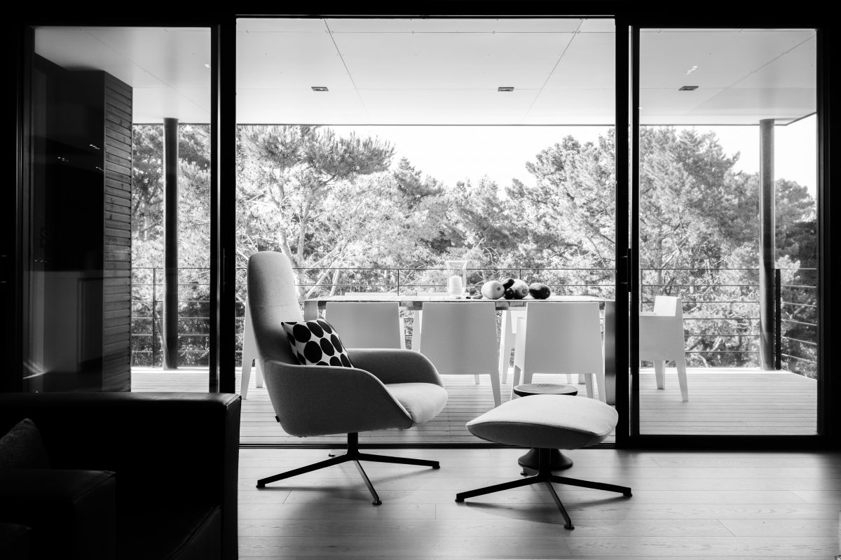 Nous sommes sous le charme de l’intérieur ultra design ouvert sur la nature.