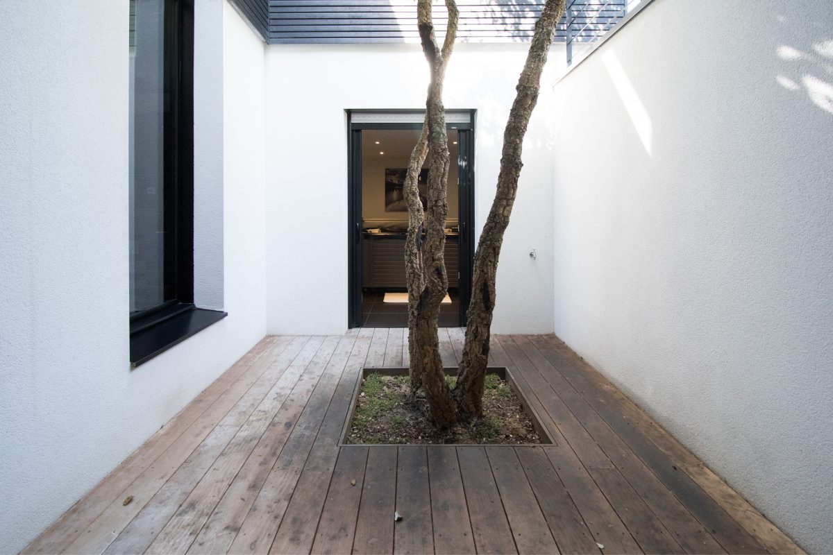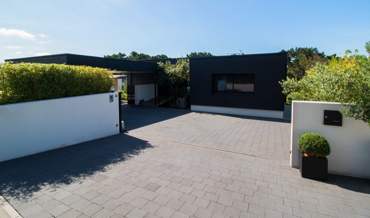 Les espaces extérieurs se dessinent par niveaux, entièrement terrassés sur la partie sud ainsi qu’autour de la piscine chauffée et pavés côté parking. De nombreux pins, phillyrea, agapanthes et autres essences ornent les pourtours de la propriété bordée de palissades ajourées noires. Un local technique pour la piscine, un abri à vélo et un carport deux voitures constituent des éléments pratiques incontestables. Sécurisée par un portail électrique et un système de vidéosurveillance.
