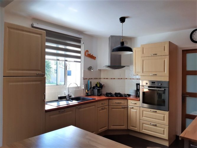 La maison est composée d’un grand salon/séjour exposé Est-sud-Ouest qui permet une luminosité toute la journée, une cuisine équipée bien intégrée à la pièce de vie et jouxtant le cellier, une chambre avec salle d’eau, un wc.