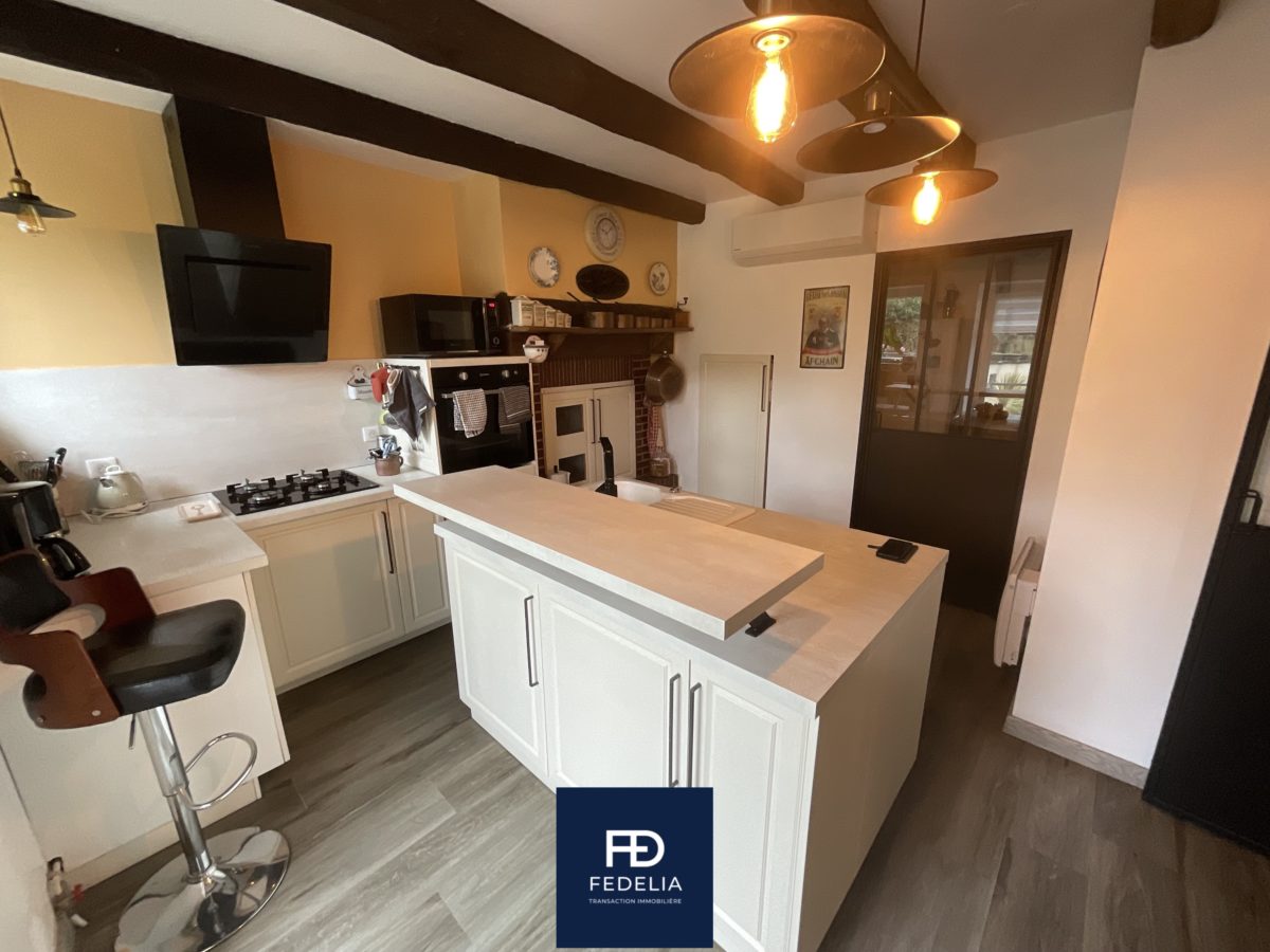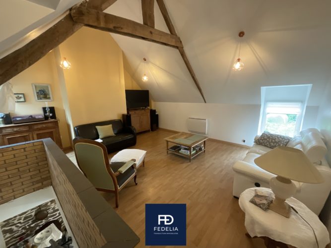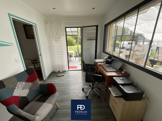 La maison se compose au rez-de-chaussée d’une cuisine équipée, d’une arrière-cuisine, d’un séjour lumineux exposé au sud, d’un espace bureau, d’une chambre ainsi que d’une salle d’eau.