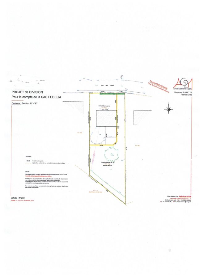 A vendre terrain de 545 m2 avec allée privative de 100 m2, Situé à 2,5 km du centre ville de Vannes, proche gare et hôpital. CES de 70 %. Terrain issu d’une division parcellaire.