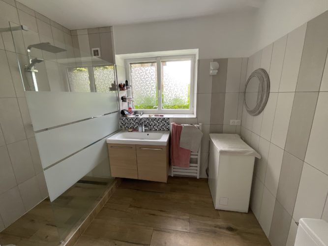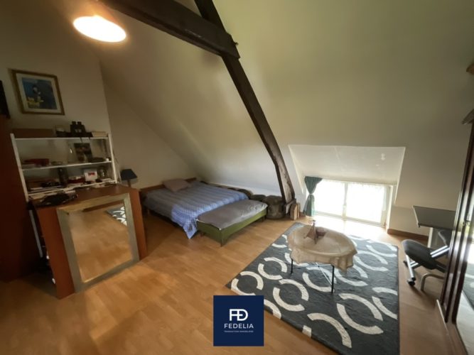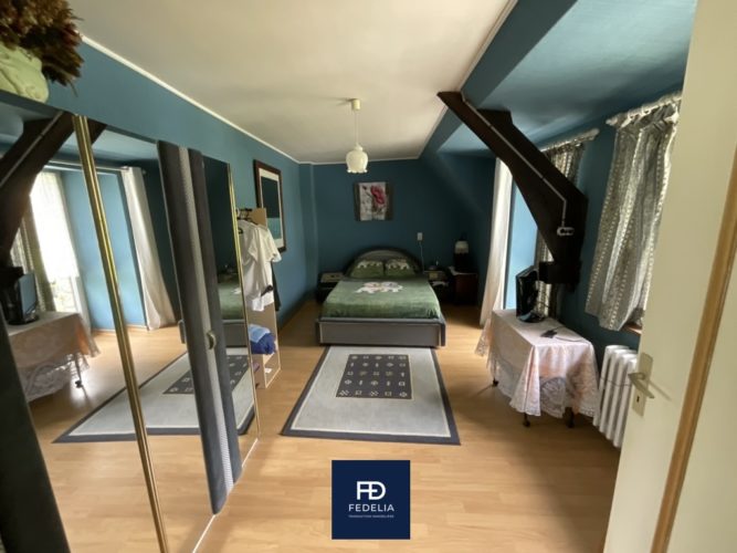 À l’étage, dont l’accès se fait par deux escaliers distincts, vous trouverez cinq belles chambres, dont une suite parentale, une salle de bains et des toilettes séparées.